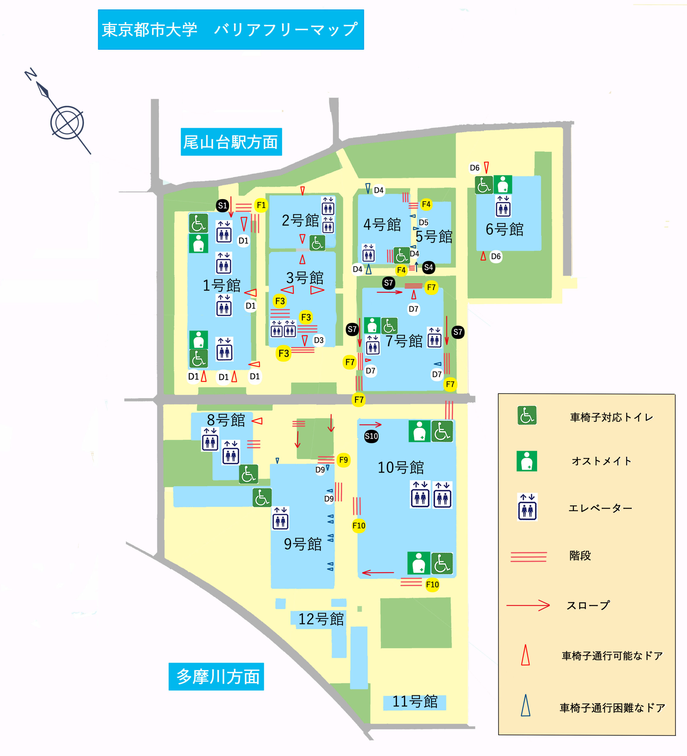 VRモデルと併用したバリアフリーマップで、世田谷キャンパスへ初めて訪れる人や身体に障がいがある人にも快適に利用する事が出来ます。